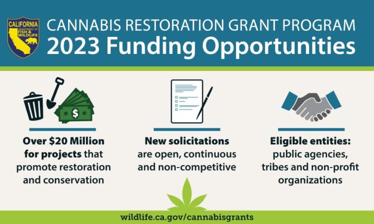 The California Department of Fish and Wildlife (CDFW) has recently announced the availability of more than $20 million in grant funding through its Cannabis Restoration Grant Program (CRGP). These grants are designed to support a variety of projects related to environmental restoration and conservation, with a particular focus on the remediation of watersheds affected by cannabis cultivation and related activities.