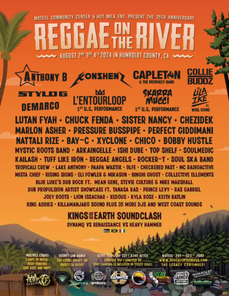 “Humboldt County has long been known for growing the country’s best outdoor, organic cannabis while pushing back against the government’s misguided prohibition against this beneficial plant,” says Christina Augustine, Vice President of the Mateel Community Center. “This year’s Reggae on the River is the perfect opportunity for people to come and enjoy our local produce and culture while enjoying world-class music and camping out under the stars.”
